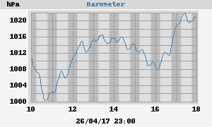 This week's min: 1007.7 hPa at 02時05分02秒 (木曜日)